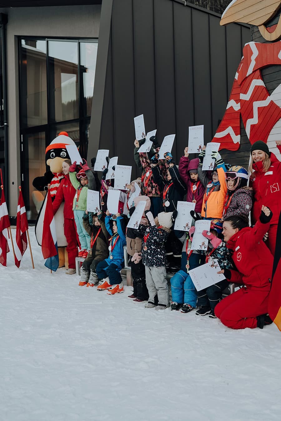Durch die genau strukturierte Alterseinteilung in der Skischule werden Kinder von 4 - 13,9 Jahre in Pingos Kinderskischule unterrichtet. Mit spielerischen Lernmethoden unter Gleichaltrigen ist der Skierfolg garantiert.